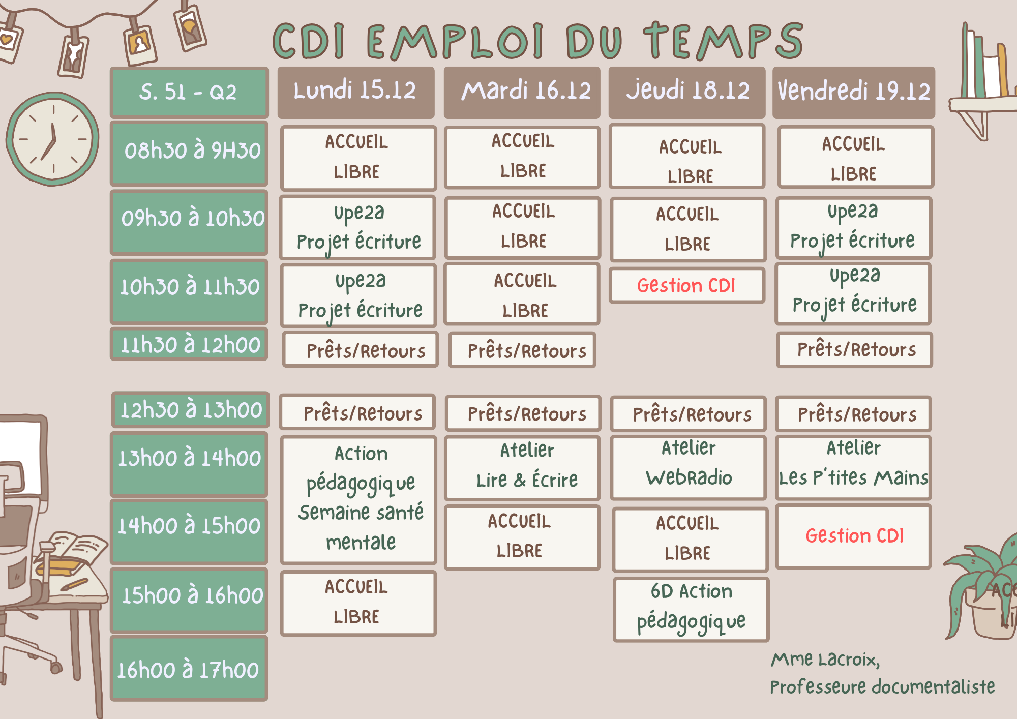 Emploi du temps du CDI