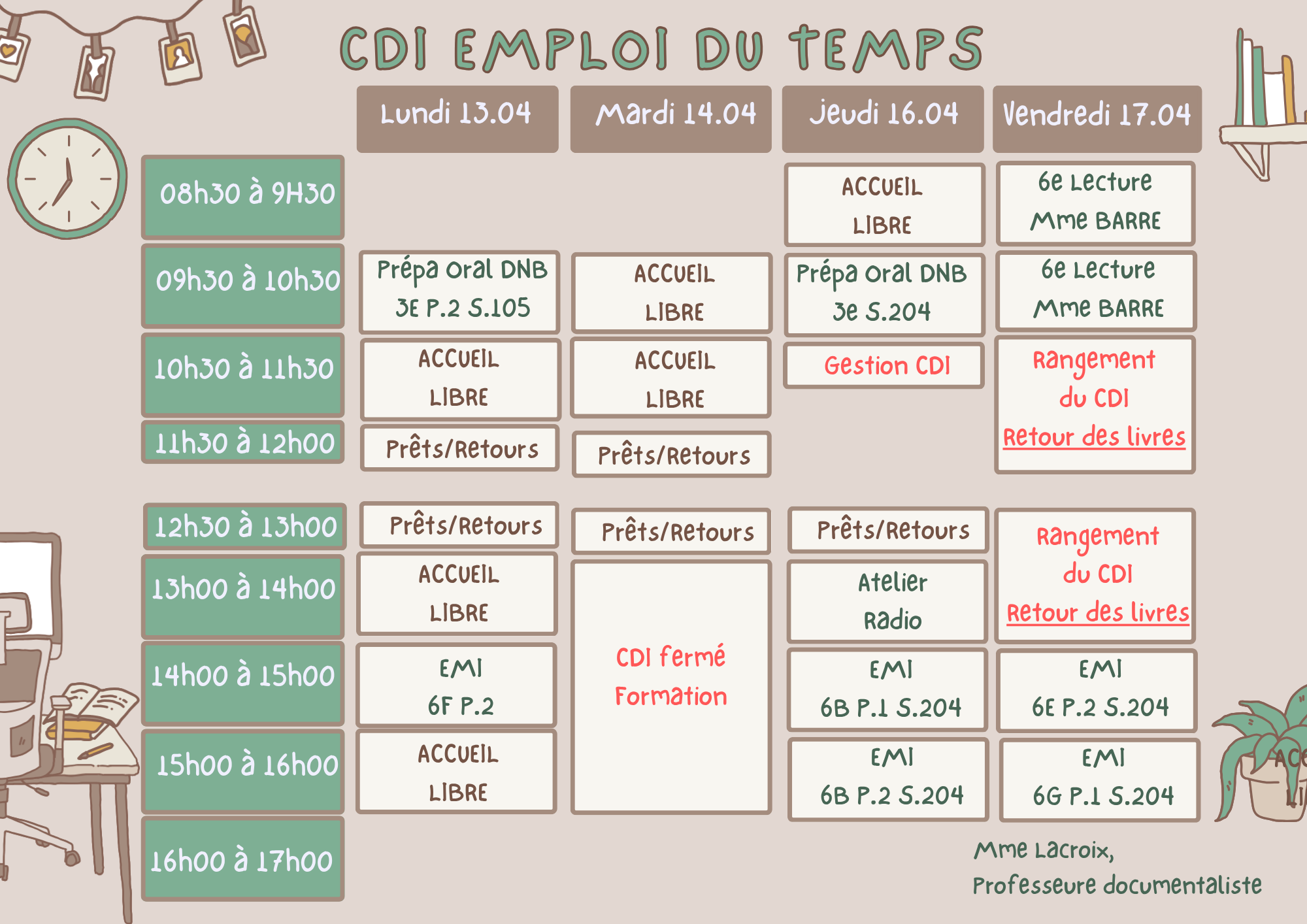 La rubrique Emploi du temps du CDI possède déjà une page d'accueil. Souhaitez-vous la remplacer ?